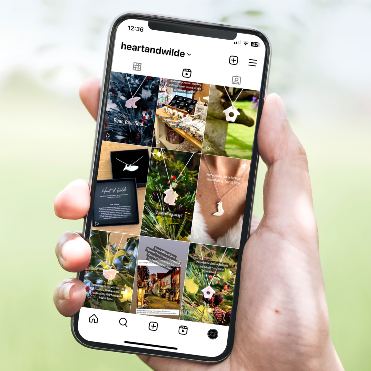 Each elegant necklace box was thoughtfully designed to complement its piece, featuring a fascinating fact about the creature represented inside. Our approach to photography and video was crafted to feel both authentic and immersive, with products nestled among the rich textures of the British countryside. We created a clean, easy-to-navigate sales website, generated engaging social media content, and developed stylish product displays and promotional materials.