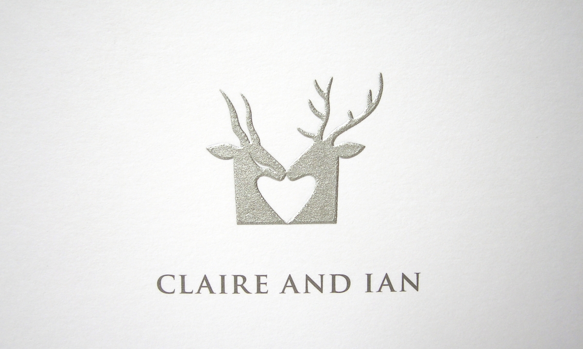 The marriage of a South African bride to a Scottish groom proved to be the inspiration for this carefully crafted wedding identity. A whole suite of stationery and ceremonial items were printed with a single elegant motif – which marries together a South African springbok and a Scottish deer, whilst revealing the heart at its heart.
